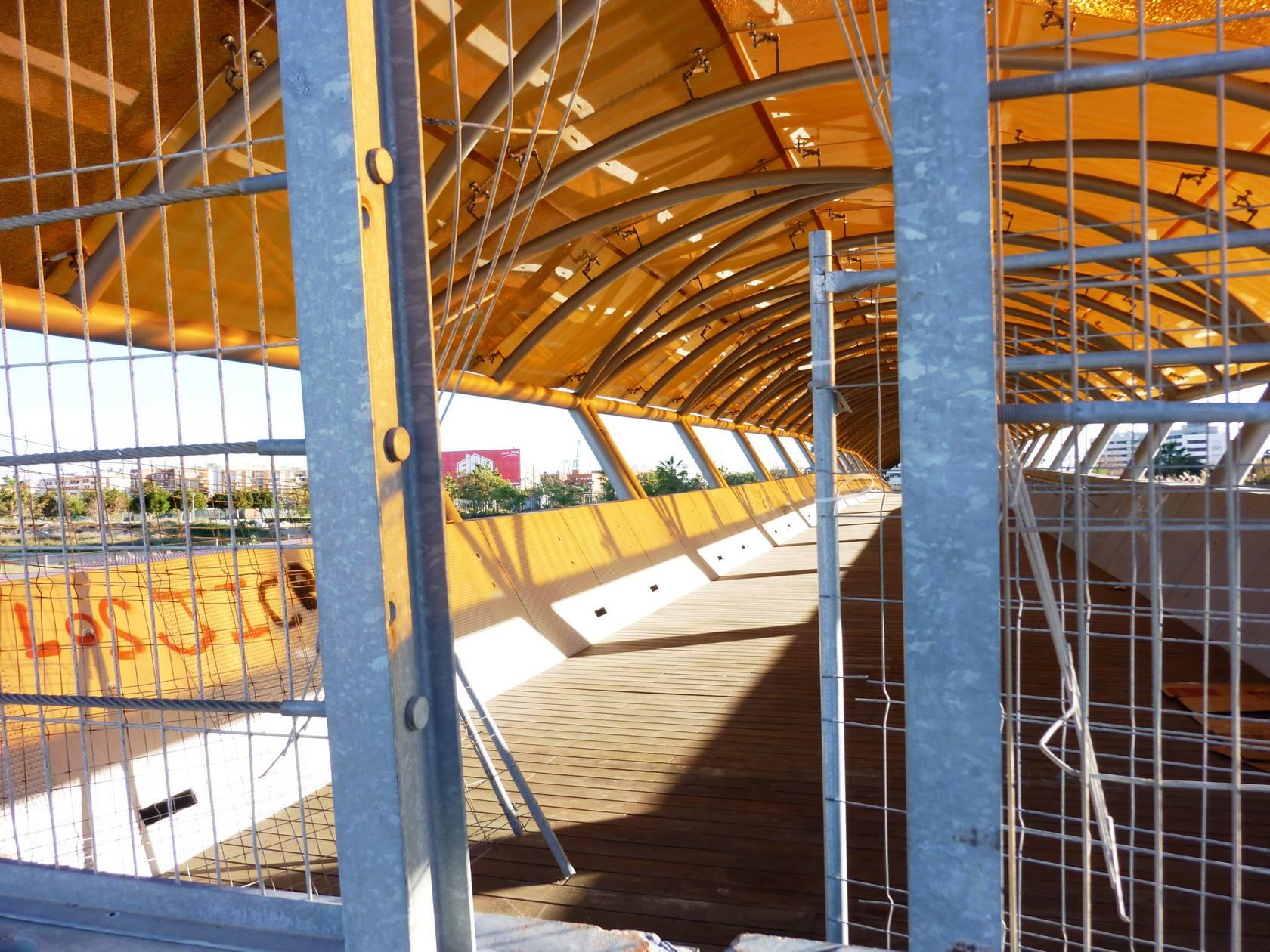 El puente, cerrado al público, sufre sin embargo una apertura en el centro de la valla que lo sella. "Por el puente lo sacan todo, y al otro lado del río, en Nazaret, llenan la furgoneta y se marchan", asegura Vicente. Los habituales carros de supermercado en la curva del circuito más cercana al puente, en la que se concentra el mayor número de agujeros en la valla, refuerzan sus palabras.