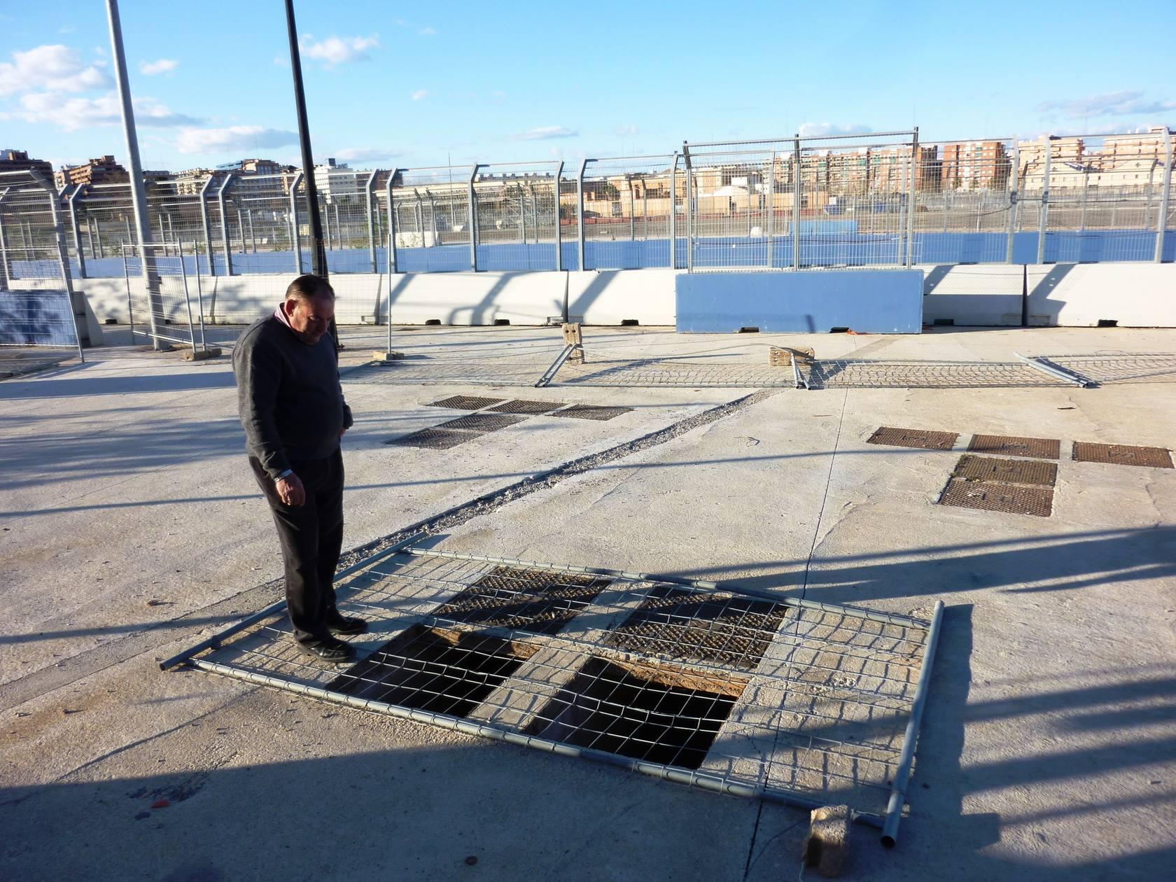 explica tras acceder a las instalaciones por la calle Ibiza. Mientras relata el delito señala una arqueta sin su correspondiente tapa, sustituida por un humilde palé de madera. "Se las llevan como si nada. Lo que hacen es apilarlas todas y de repente venir un día y llevárselas", indica. La senda que recorre da acceso a un espacio vallado en el que -asegura Vicente- se hallaba un enorme grupo electrógeno del que ya no queda ni rastro. "Resulta increíble, pero poco a poco lo desmontan hasta sacar todo el metal de ahí dentro", apunta.